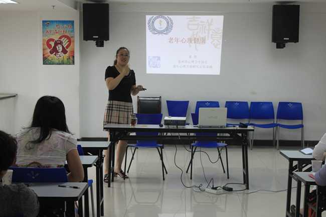 在现场朱老师给大家做了一份量表测试,从多个相对独立的人格特点对人进行描绘,帮助咨询师志愿者们在更了解自我的基础上增强对人生方向的把控能力。接着朱老师就老年人的心理特征、老年人心理保健的方法等向在座的志愿者们进行了指导,其中不乏诸多细致的举例,朱老师用自己亲历得来的经验和方法引导着大家,争取让他们更快地融入到关爱老年人心灵健康的前奏中去。