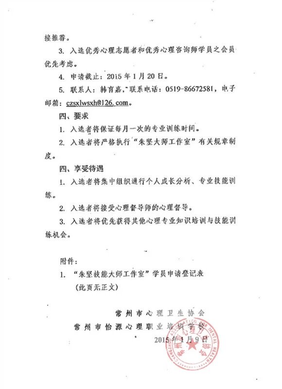 常州市心理卫生协会——关于遴选心理咨询师参加大师工作室学习的通知
