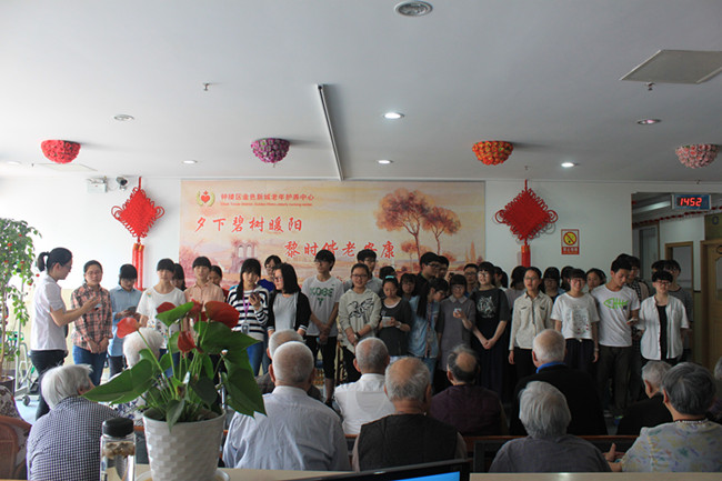 志愿者们首先带来了一出小品,展现了独身老人在晚年再度寻找另一半的故事。虽然没有把握老人们听懂了台词的每一句,但可以肯定的是一定感受到了年纪仿若自己儿女的大学生们对于自己无论在什么年纪都能够找到幸福的意愿。