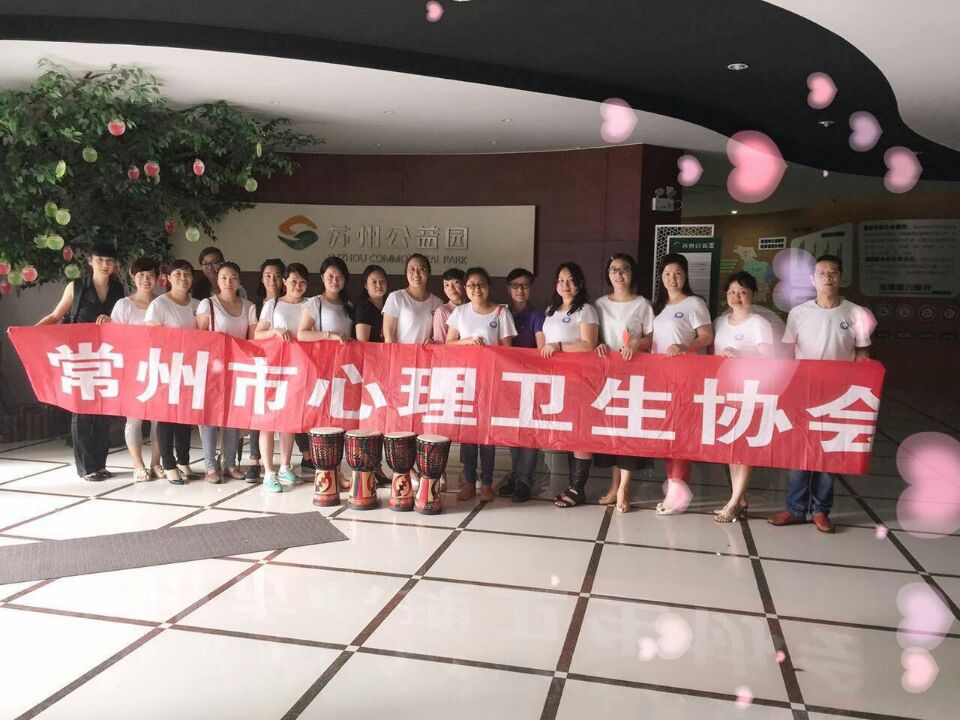 有一种执着叫风雨兼程,有一种追求叫持之以恒。7月12日清晨,梅雨连绵,常州市心理卫生协会、常州市女社会心理工作者协会一行19位会员,在“两会”理事长朱坚老师、副理事长孔匡建老师的带领下,冒雨驱车前往苏州公益园,参加为时一天的欢乐鼓非洲鼓培训。