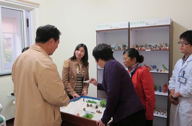 本协会派出办公室的杨玲凤老师前往参加这次活动,在心理应用基地—心理保健室向视察的一行人员就一般遇到情绪困扰、心理障碍,如何调节消除这一不良情绪、还有心理沙盘疗法(心理箱庭疗法)是分析心理学理论同游戏(摆放沙具)以及其他心理咨询理论结合起来的一种心理临床疗法,通过创造的意想和场景来表达自己,直观显示内心世界,从而可以绕开咨询中的阻抗,箱庭疗法也可以作为正常人心理活动投射的体验,个人都可以在箱庭里创造自己的故事,不论是过去的还是将来的,表达和体现的都是人生的缩影“睁着眼睛做梦”,等有关知识作了简要的解说。