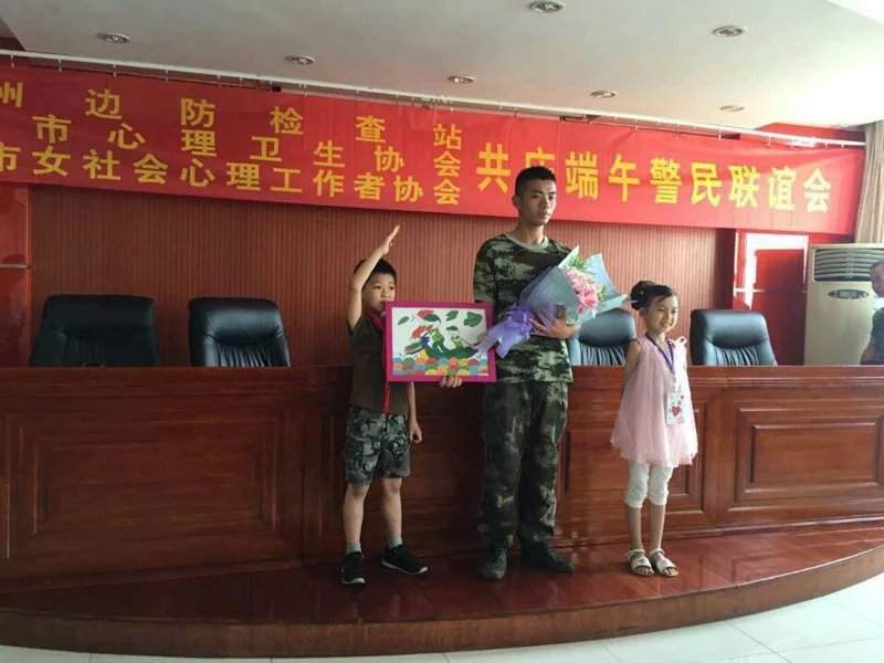 6月20日一大早,常州市心理卫生协会和常州市女社会心理工作者协会的会员们,驱车前往位于录安洲的常州边防检查站,慰问驻守边检的官兵们。端午时节聚首录安洲,军民携手同唱共建歌。