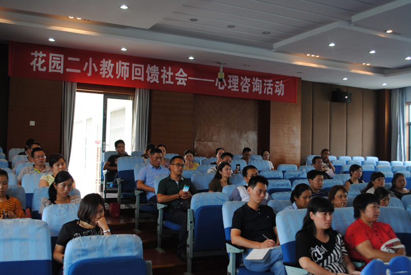 2015年9月10日下午,高级心理咨询师督导师、常州市钟楼区心理服务中心主任朱坚老师,心理督导师、常州市“绿色互联青少年辅导中心”执行主任孔匡建老师,国家二级心理咨询师、常州市心理卫生协会副理事长王京老师,国家二级心理咨询师、常州市心理卫生协会办公室副主任张毅老师,国家二级心理咨询师、常州市心理卫生协会青少年潜能开发部部长宋丽老师等心理咨询专家走进花园二小,开展了“花园二小回馈社会:心理咨询活动”。