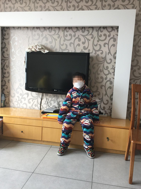 钱会长和志愿者们都关切的询问孩子的病情及家庭情况,小徐小朋友的妈妈为了能更好地照顾孩子,没有工作,全心全意的在家照料孩子的生活起居。小徐小朋友的爸爸在安徽合肥工作,每次孩子要去南京化疗,他的爸爸就从合肥赶回来陪伴孩子,等化疗结束再赶回合肥工作。在我们志愿者与小朋友交谈的时候就发现,小徐小朋友的右手是不动的,妈妈有的时候不小心碰到了他的右手臂,他会说,妈妈你又碰到我的手了,很疼。经过询问才知道小徐小朋友现在双腿有积水,走路缓慢,右边胸口有预埋针,且已经埋了一年多,右上臂还埋有流质针头,因为怕预埋针头会移位,小徐小朋友不敢用右手,拿玩具,拿书都是左手。