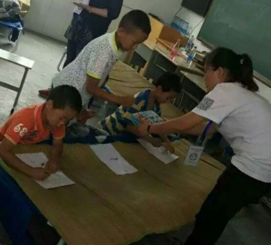 第四组,对双桥村做心理干预的两位孩子做了回访。得知一个于昨天下午顺利返校,另一个在我们心理危机干预师的陪伴和引导下,亲自带领我们去学校指认自己的座位。