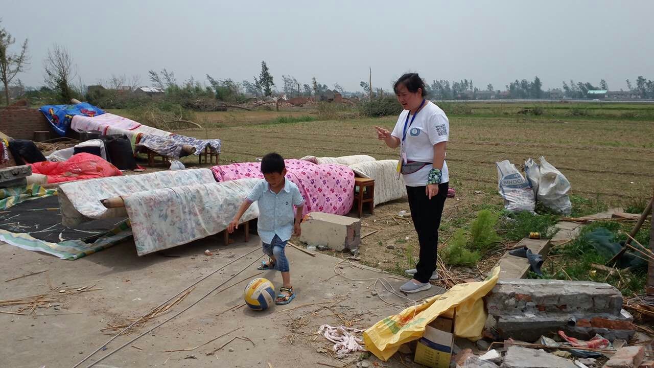 6月30日,常州市红十字会心理救援队来到阜宁的第三天。天气虽越来越热,但20名心理危机干预师的热情却日趋高涨。兵分四路,各司其职。第一组在奔赴重灾区南湾小学安置点,为那的学生在团体心理干预。