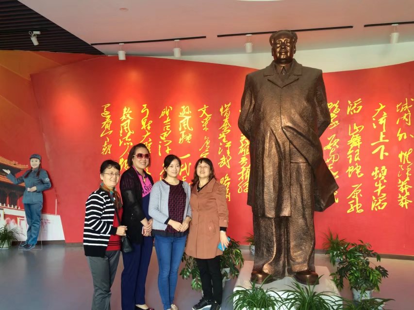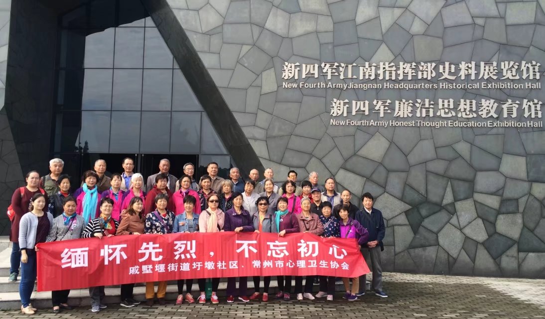 新四军纪念馆的讲解员带领大家参观了将军廊碑、陈毅指挥部旧址、毛泽东像章陈列馆、新四军江南指挥部史料展览馆......在毛泽东像章陈列馆,参加活动的老同志们对馆内的近万枚毛主席像章兴趣盎然,边看边讨论这一枚枚像章的年代,材质;在毛主席的雕像前,老同志们纷纷要求和我们常州市心理卫生协会的朱坚理事长合影,朱老师顺势给她们做起了心理辅导,鼓励她们在怀念过去的同时也要展望美好的未来,要老有所为,老有所乐!