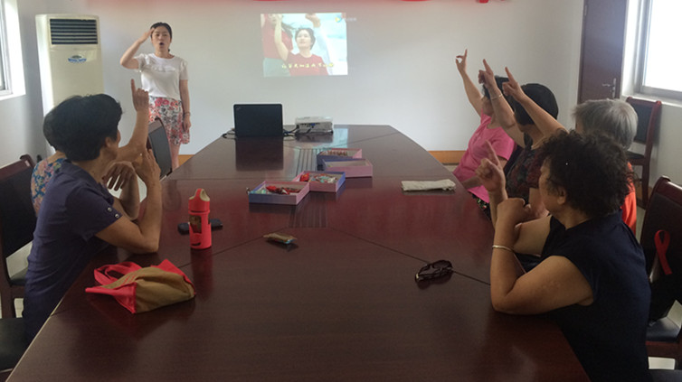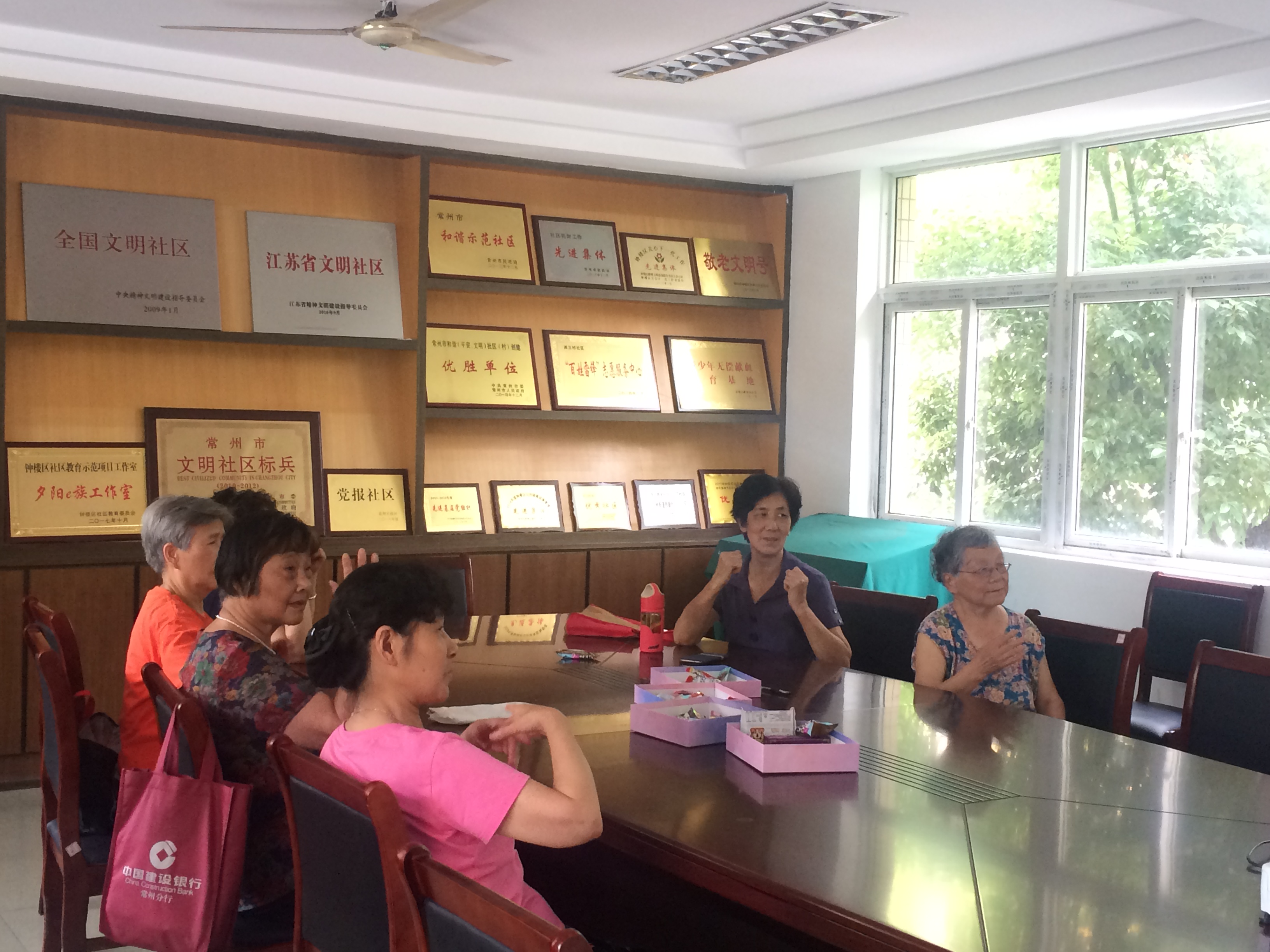 6月27日炎热的下午,我们钟楼福祉心理服务中心的程萍、孔小平、杨华三位老师来到荷花池街道西三社区,为我们西三社区的老年人进行“心灵沟通沙龙”小组团体辅导。首先有程萍老师为各位老人家表演了手语“感恩的心”,老人们看的兴致勃勃,强烈要求我们程老师教大家学手语,程老师欣然答应了老人家的要求,一个个,手把手教老人家“你好”“你吃饭了吗”“再见”等一些日常简单的手语,老人家学的认真又开心!