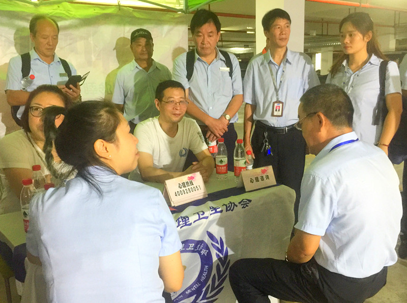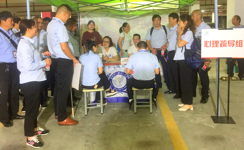 10点准时,空袭警报鸣响,工作人员闭合人防门,开展紧急掩蔽演练,到达人防工程的各组组员们集中处收看宣传片,我们心理卫生协会心理咨询师志愿者老师开始给疏散群众心理辅导,现场群众积极配合,井然有序……