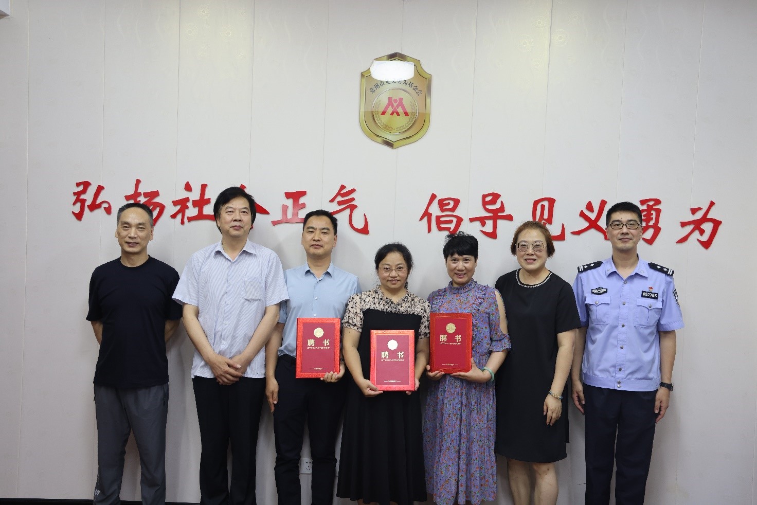 最后,常州市见义勇为基金会秘书长刘敏方为咨询师们颁发聘书并合影留念。