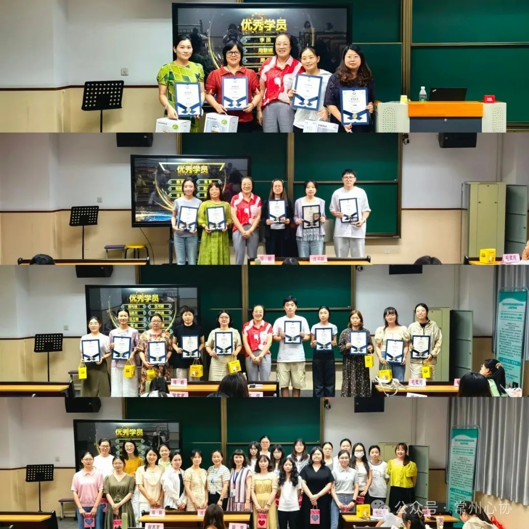 心协副秘书长缪燕平以感性主持点燃"星光典礼":时光长廊:滚动照片唤醒同行的记忆;心声共振:教师即兴分享成长轨迹,"从不敢接咨询个案,到如今手握法宝秘籍——这为期两个月的课程重塑了我的职业生命"。荣光时刻:优秀学员踏上红毯,绶带映亮含泪的笑靥。
