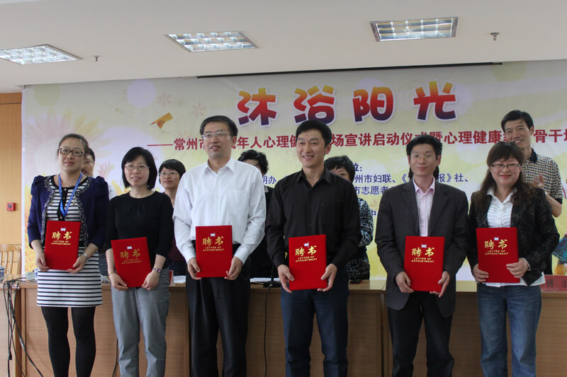 4.24下午两点钟由常州市文明办,常州市教育局,常州市妇联,《常州晚报》社,中国常州网,常州市志愿者总会,主办的未成年心理健康千场宣讲启动仪式心理教育骨干培训。会议开始由市文明办副主任黄娅芬,市教育局副局长沈梅,市妇儿工委办主任于巧锡等讲话。常州市心理卫生协会此次光荣当选为“常州市首批未成年人心理健康教育”特邀宣讲员为:常州市心理卫生协会理事长朱坚,常州市心理卫生协会副理事长兼秘书长孔匡建,常州市心理卫生协会副秘书长王京,常州市心理卫生协会副秘书长费祎娜。