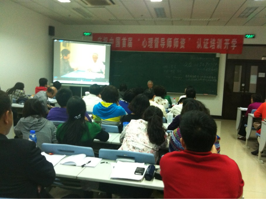 在北京大学医学部逸夫教学楼内,常州市心理卫生协会理事长朱坚老师及常州市心理卫生协会副理事长兼秘书长孔匡建老师,正在接受中国首届“心理督导师师资认证培训”。