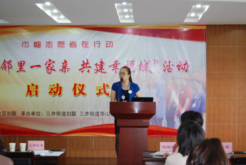 今天是世界家庭日,常州市妇联把它定为“常州市巾帼志愿者服务日”。常州市志愿者总会心理咨询师分会的会长朱坚老师(全国百名优秀志愿者之一)在新北区妇联的“邻里一家亲,共建幸福城”启动仪式上讲解了志愿者的意义、精神、含义、来源、发展、特征等,让在场的巾帼志愿者们从新对自己的志愿者身份有了更深刻的了解。