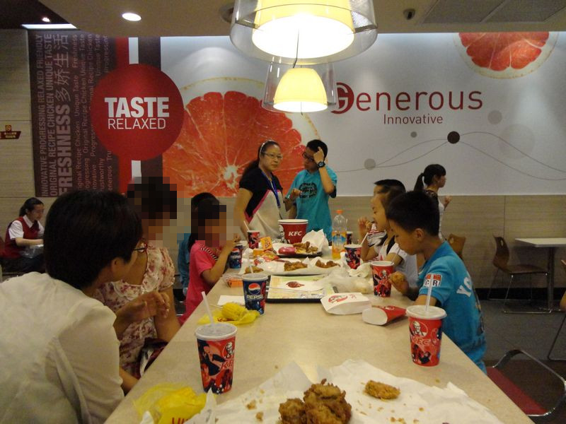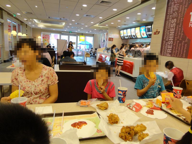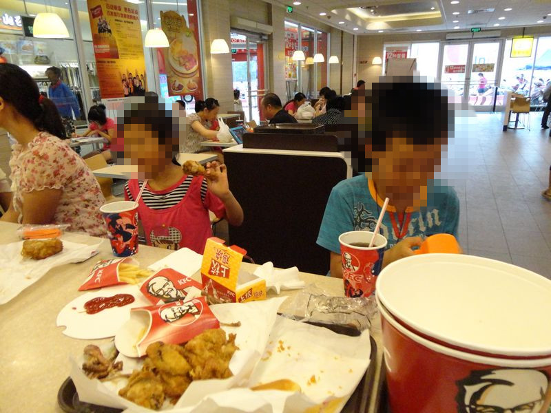 在湖塘那的肯德基店里,常州市心理卫生协会的陈亚老师为俩兄妹一人点了一份儿童套餐、三个全家桶、一人一杯饮料、一人一对奥尔良烤翅、一人一杯冰淇淋(还是哥哥特意为妹妹选了一杯草莓的冰淇淋)。