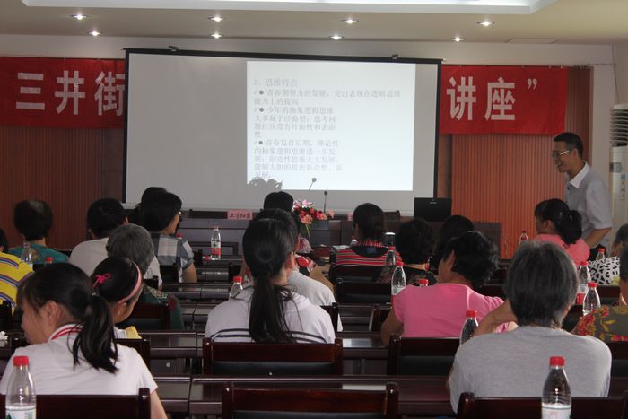 常州市心理卫生协会副理事长兼秘书长、国家心理督导师师资孔匡建老师正在为三井街道的家长和孩子们讲一堂“关爱心灵辅导讲座”。现场的气氛异常活跃,家长和孩子们争先恐后地在向孔老师提出问题,孔老师非常耐心地一一解答。不知不觉中一个半小时的讲座就结束啦!大家从中学到了好多的知识,希望以后能够多举办些类似这样的讲座。