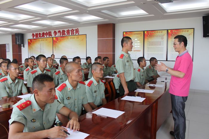 然后,孔老师与士兵们进行了深入的交流,进一步诠释团队在生活中的重要性,以及团队协调力与凝聚力的可贵。他的妙语连珠更是惹得士兵们开怀大笑,畅谈不已。