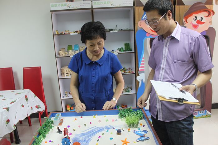 江苏省老龄办副主任牛彪还亲自体验了一些我们常州市心理卫生协会的放松疗法,包括我们协会的箱庭疗法,经过了解后牛主任对我们协会是赞不绝口"老年心理关爱研究中心常州示范点好样的"!并且希望能够为更多的老年人送上我们对他们的关爱!