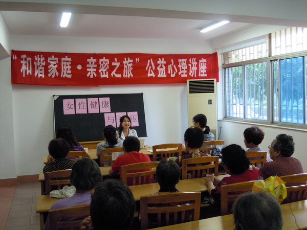 为提高广大群众的生活质量,常州市妇联开展了“幸福女性·和谐家庭”心灵关爱工程,在全市普及心理健康知识,开展送讲座进基层活动。6月26日下午,市妇联“和谐家庭,亲密之旅”公益讲座特邀讲师,常州市心理卫生协会副秘书长、高级讲师、签约心理咨询师吴娟老师,和市妇联相关领导一起走进天宁区红梅街道红梅西村社区,为社区妇女举办了一场题为“女性健康与减压”的主题讲座。吴娟老师为居民们讲述了如何减少生活压力,提高生活质量;女性的压力主要来自哪些方面;到底该怎么做才是最好的方法等知识,并通过互动交流,向大家介绍了日常生活中帮助减压的十二个妙招和五种自我调解的方法。讲座在轻松融洽的气氛中进行,内容充实,贴近生活,受到了在场居民的一致好评。(天宁区妇联供稿) |
