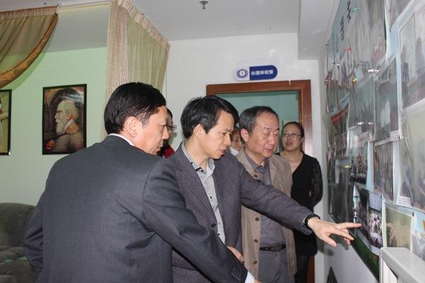 常州市心理卫生协会副理事长兼秘书长孔匡建向吴主任详细介绍了从事老年精神关爱的专业化服务队伍建设及行政管理等方面。吴主任详细参观了该示范点的场地、设备,及以往开展活动的图片,并参观了常州市心理卫生协会志愿者活动宣传栏。