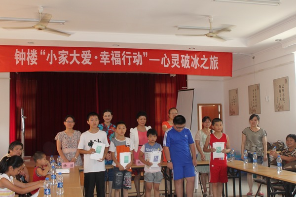 钟楼“小家大爱●幸福行动”——心灵破冰之旅即关爱单亲贫困家庭活动于2013年7月20日上午9点在钟楼区勤业一社区正式启动,钟楼区妇联主席朱云、常州市心理卫生协会理事长朱坚、常州市心理卫生协会副理事长王京、五星街道妇联主席徐洁、钟楼区妇联“小家大爱”负责人庞文雅参加了启动仪式。仪式由“小家大爱●幸福行动”心理志愿者钟楼组组长沈小丽老师主持,钟楼组副组长周宾、组员何娅、钱晓燕、杨玲凤一起参加了此次活动。