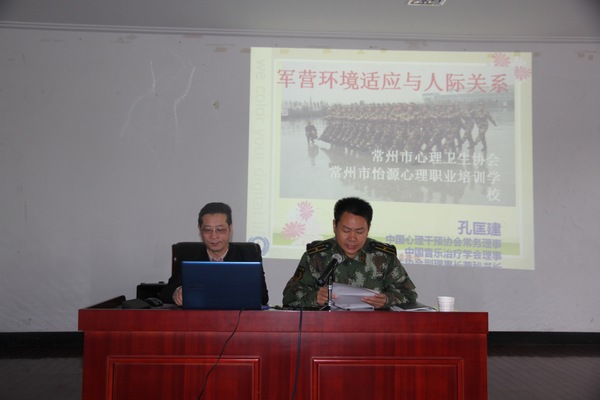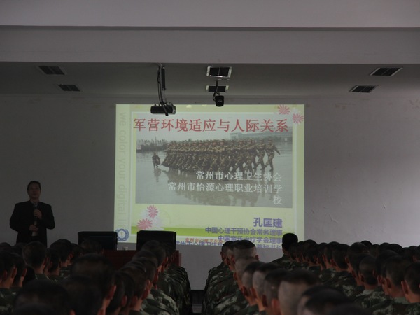 2013年10月29日上午,武警常州支队新训大队邀请常州市心理协会理事长孔匡建老师进行专题授课辅导。