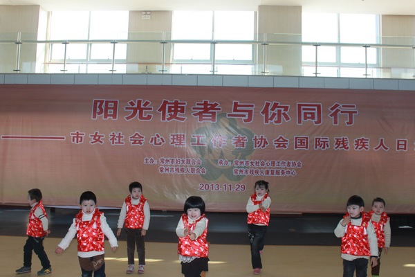 紧接着常州市残疾人康复服务中心的儿童为我们表演了精彩的节目,分别是聋儿表演的儿歌连诵和韵律操、孤独症儿童及家长表演的舞蹈、脑瘫儿童表演的儿歌朗诵。看了他们的节目,让人止不住地流下眼泪,十分感动。现场最后大家在康复中心的老师手语带领下齐唱《感恩的心》。