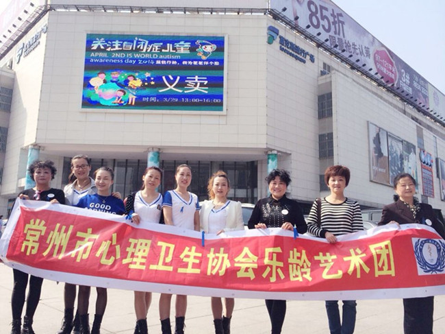 3月30号下午,常州湖塘富克斯流行广场,这里正在举行一场由武进区残疾人康复服务中心、武进区蓝精灵儿童康复中心、共青团常州市武进区委员会举办的关注自闭症儿童的活动。常州市心理卫生协会乐龄艺术团的团员高惠琴、周英、沈美娣、吴敏、潘玲飞、吴海红、沈小康、秦玲、李玫参与了活动。活动主办方希望通过文艺活动,义卖,捐款等方式让更多人了解,关注这个非常群体,对他们的生存现状了解,呼吁大家关怀和呵护自闭症儿童。我们心协乐龄艺术团积极响应,参加了此次活动,并在活动中表演了大家一致好评的文艺节目《小宝气》。