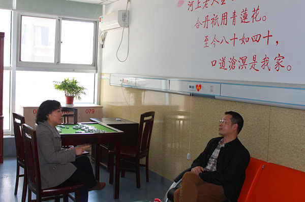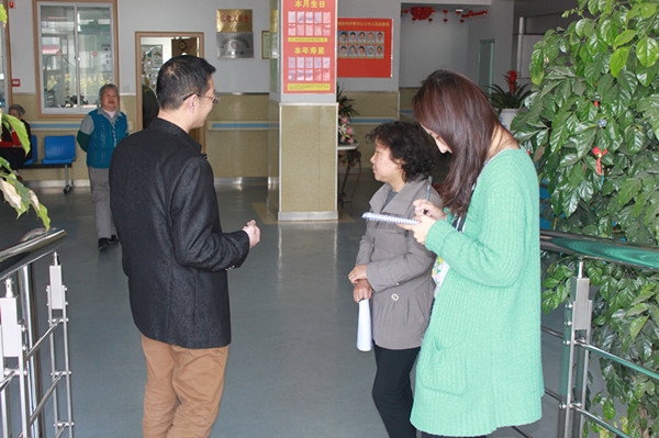 孔老师与老人服务中心的负责人张女士讨论了关于现居住在服务中心老人的情况。整个养护中心共有老人七十多位,其中有一半以上患有不同的疾病,如帕金森,间歇性记忆障碍,肢体不健全,五官不健全,失能甚至精神上有缺陷,而且大多数都是高龄老人,需要心理生理上的辅导和支持。张女士也谈及个别案例,谈到关于与高龄老人的沟通存在障碍的问题,有的只能靠骗和哄;谈到子女将老人寄托于养老院,一方面是因为养老院有更好的设施帮助老人恢复健康,与同龄人在一起有个伴,另一方面也避免老人一人在家有突发事件的发生。随后孔老师也探望了103岁长寿老人,问候老人的身体状况,有什么需要帮助,老人也精神地回答了一切都好,也祝愿孔老师身体健康。在探望老人的同时,孔老师特别强调了关于护工的心理健康疏导,作为每天与老人打交道的护工,也无时无刻承担着护理的风险,做好对这类特殊人群的心理健康疏导工作也极为重要。