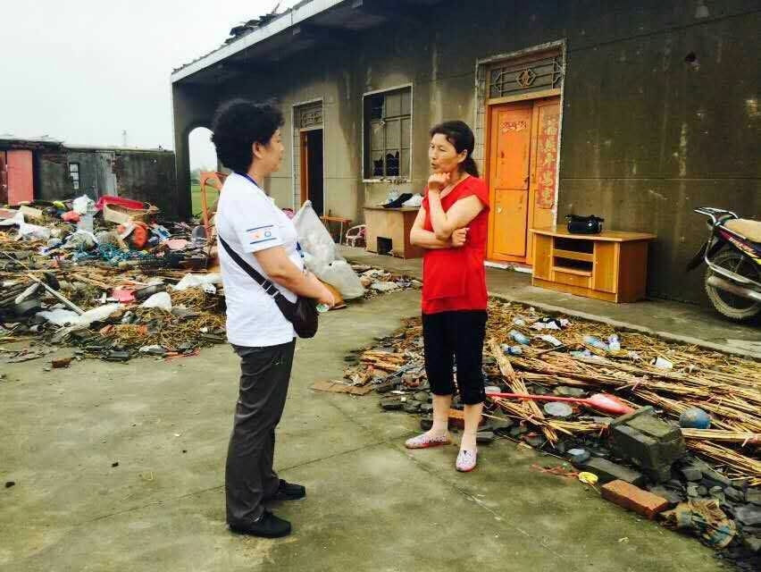 当走入一户村民家,身穿红衣的主妇吸引了我们的注意,经过交谈,我们得知她家并没有人伤亡,灾难发生时,她顾不上强烈地飓风和如雨的冰雹,快速地从外间厨房跑进两层楼的一楼堂屋,像母鸡护小鸡一样把两个年幼的孙子护在大门边的墙角,躲过了这场可怕的风灾。进入灾区以来,见多了灾民们各种死伤状况,这是我们看到为数不多的没有伤亡的家庭,是幸运吗?也许有,但我们觉得应该还有勇敢和机智吧。