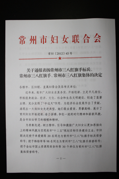 朱坚理事长荣获三八红旗手